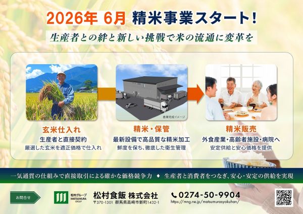 松村食販では、新事業として”精米事業”を開始いたします。これに伴い、新たに「低温ライスセンター」の建設を進めております。